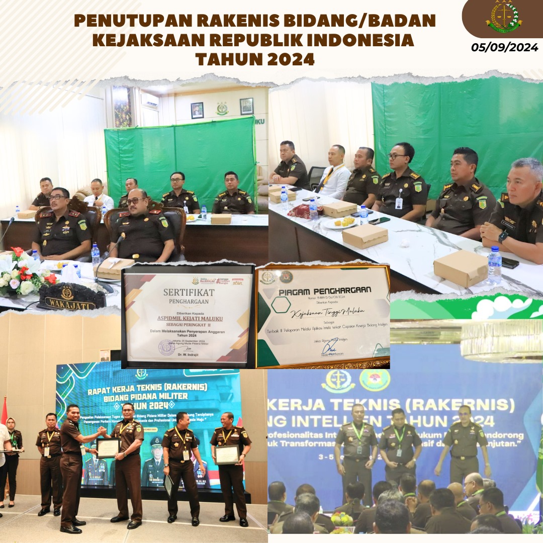 KEJATI MALUKU MENDAPAT PERINGKAT TERBAIK DALAM PENUTUPAN RAKERNIS KEJAKSAAN REPUBLIK INDONESIA TAHUN 2024