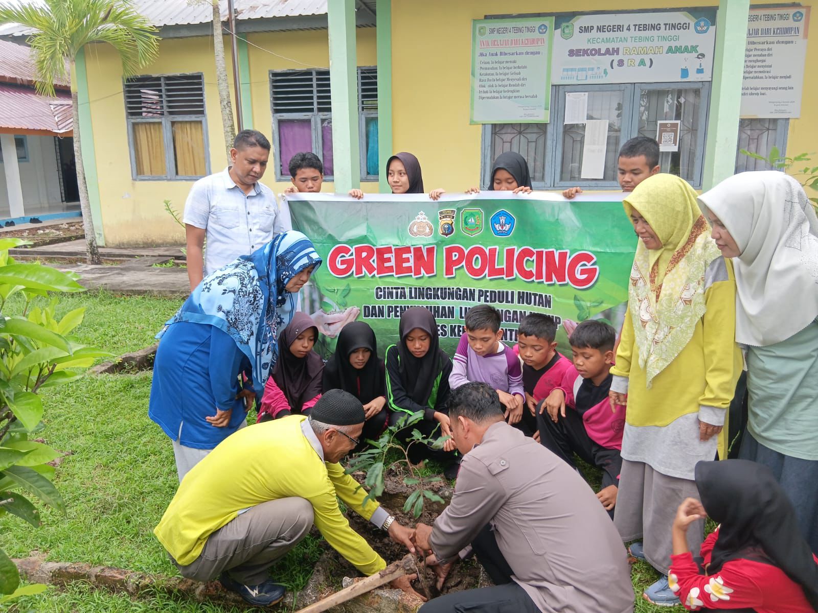 Sebelum Kegiatan penanaman pohon , upaya membangkitkan antusias siswa Kegiatan Green Policing ini juga dilaksanakan Kegiatan edukatif perihal kegiatan peduli lingkungan dari rumah dan lingkungan sekolah, interaktif bersama siswa berhadiah paket alat tulis dengan tema peduli lingkungan sampai puncak kegiatan penanaman 10 bibit pohon Mangga di lingkungan sekolah SMP N 4 Tebing Tinggi, SD N 02 Tebingtinggi dan SD N 19 Alahair Timur Kec. Tebing Tinggi Kab. Kep. Meranti.