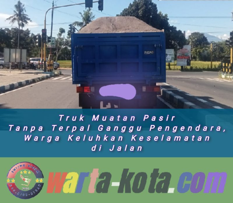 Warta-kota.com, Lumajang – Keberadaan truk pengangkut pasir yang melintas di jalan raya tanpa menggunakan penutup terpal dikeluhkan oleh sejumlah pengguna jalan. Kondisi tersebut dinilai membahayakan, terutama bagi pengendara roda dua yang kerap berada di belakang kendaraan tersebut.